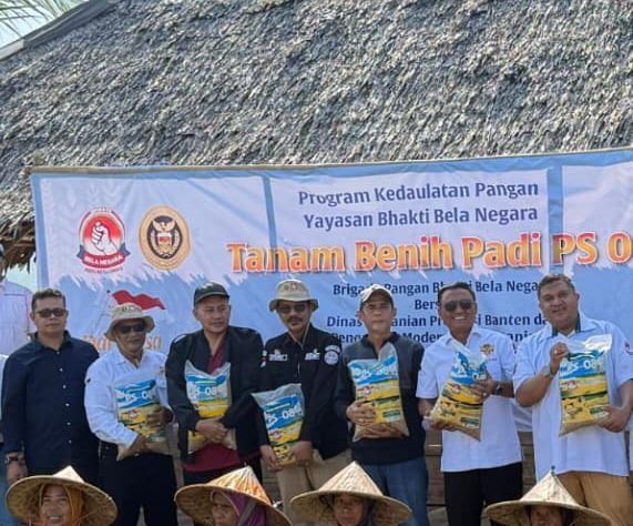 Pandeglang — Komitmen memperkuat ketahanan pangan nasional kembali diwujudkan melalui kegiatan langsung di sektor pertanian. Yayasan Bhakti Bela Negara melaksanakan penanaman benih padi unggulan jenis PS 08 di Kampung Mataram, Desa Sukarame, Kecamatan Carita, Kabupaten Pandeglang, Banten.