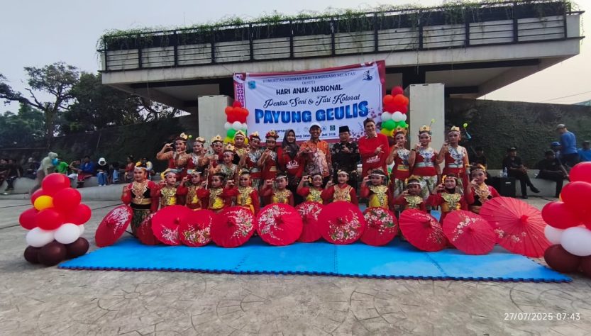 Tangerang Selatan – Sebanyak 450 penari dari berbagai sanggar tari di Kota Tangerang Selatan tampil memukau dalam pertunjukan seni dan tari kolosal bertema “Payung Geulis”, yang digelar di Alun-Alun Pamulang pada Minggu (27/7/2025). Acara ini merupakan bagian dari peringatan Hari Anak Nasional 2025 yang diinisiasi oleh Komunitas Seniman Tari Tangerang Selatan (KSTT).